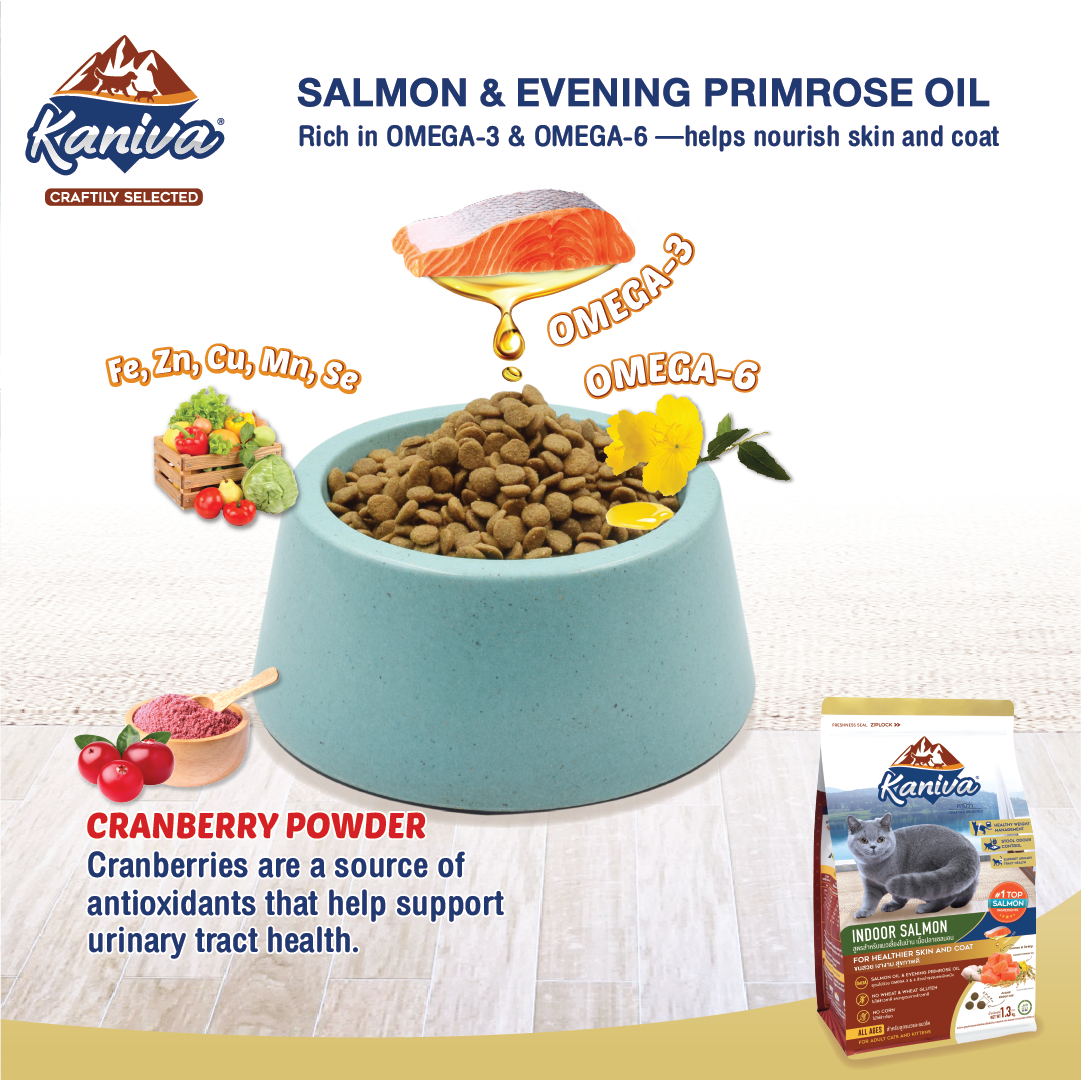 Cats are family, and they deserve real, nourishing food that keeps them healthy, happy, and full of life. Kaniva Indoor Ocean Fish Formula combines flavor, nutrition, and functional health benefits in every bite: