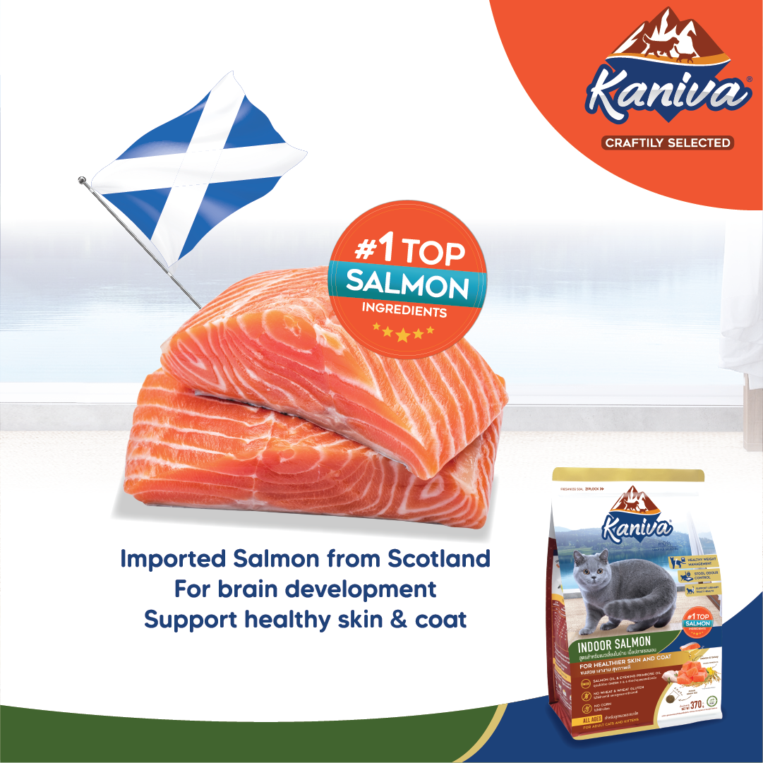 • Salmon: Rich in Omega-3, promotes healthy skin, shiny coat, and overall wellness